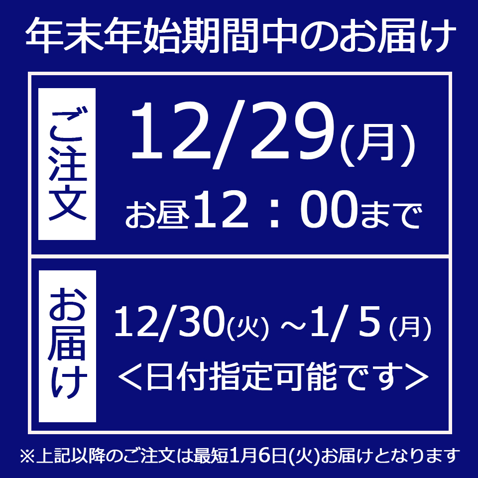 ◆12月29日 お昼12:00までにご注文頂きますと 12月30日~1月5日までのお届けを承ることができます。(日付指定可能です)
