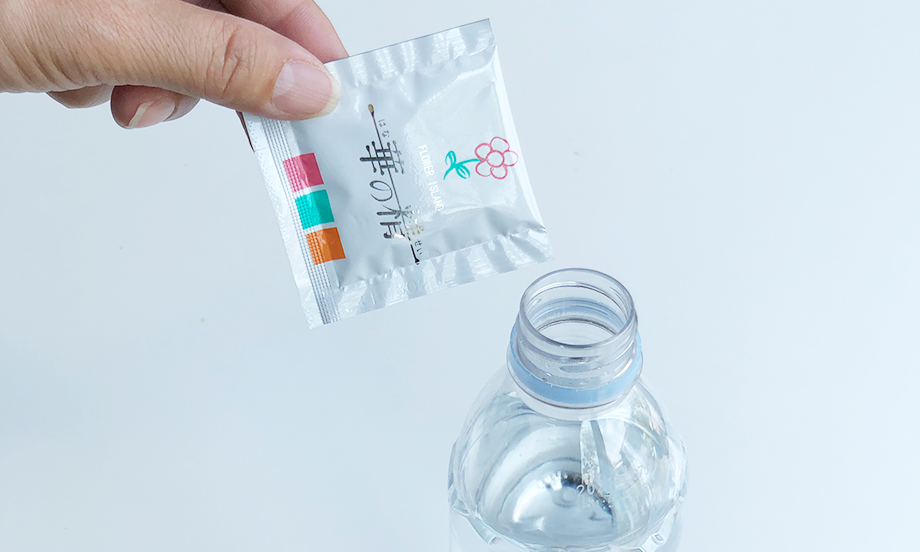 花瓶に同封の「切り花の活力剤」を500㎖の水に対して1袋を入れます。