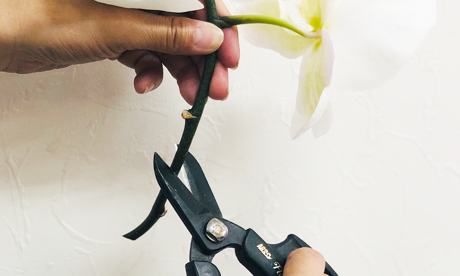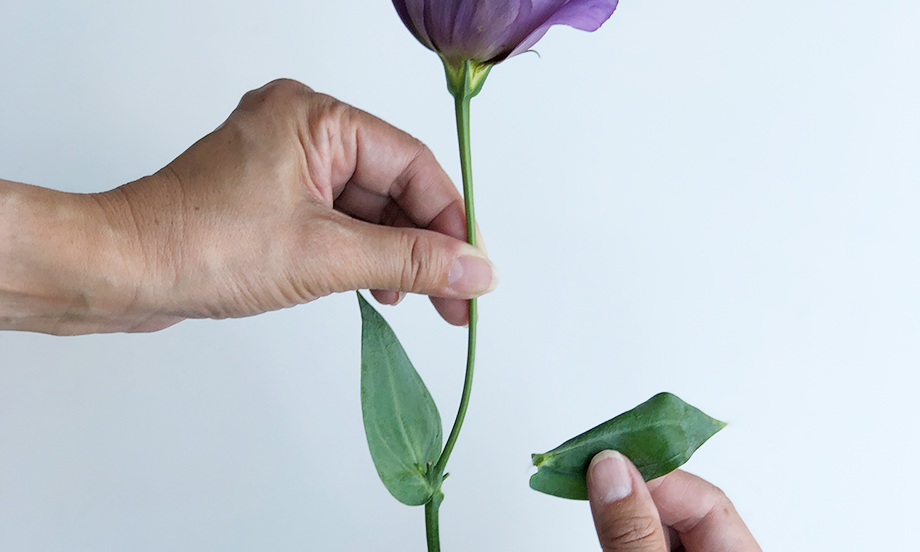 お花の下葉を取り、葉が水に浸からないようにします。