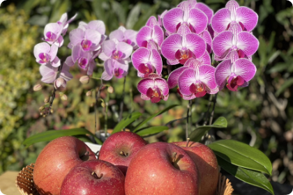 お花の近くに果物を置くと