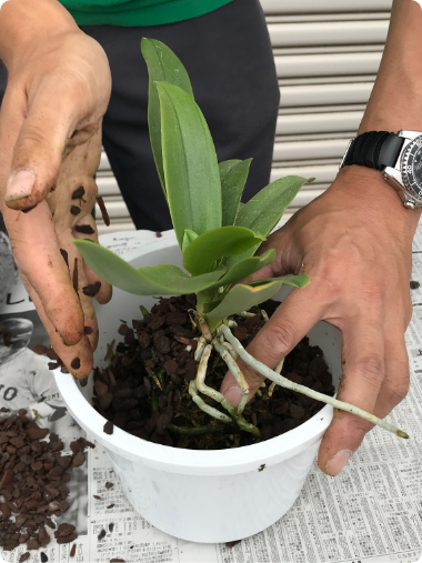 花芽無しの苗は植替え時期であれば植替えを行った方がより管理しやすくなります