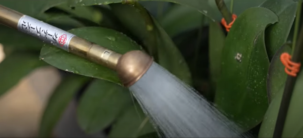 胡蝶蘭が弱る原因の約8割は“水のやりすぎ”です。ミズゴケ or バークが乾いてからの水やりを心がけましょう。冬は 7〜10日に1回、夏は 4〜7日に1回が適切です(根の乾き具合を見て、環境により調整していきましょう)。