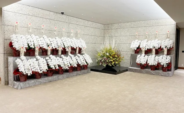 立札は「贈り主が誰か」を知らせる重要な要素ですが、長く出しすぎると企業同士の関係性で気を遣わせるケースもあります。そのため、多くの企業では立札のみ先に外す(1〜2週間)、胡蝶蘭はそのまま飾るという方法を取ります。