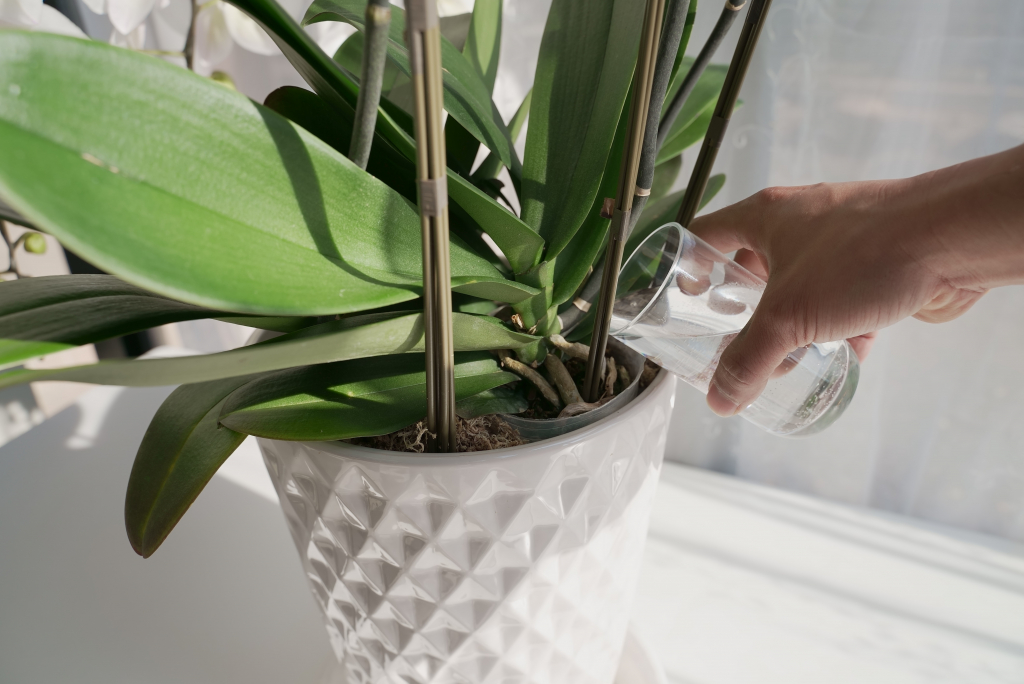 家庭で胡蝶蘭を育てる場合、水やりの「時間帯」は季節によって変えるのがポイントです。