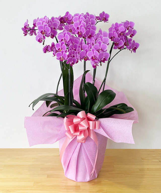 大輪胡蝶蘭よりも小ぶりながらも胡蝶蘭特有の優雅さは健在で、花持ちが良く、1〜2か月以上楽しめる点は大輪胡蝶蘭と変わりません。自宅用としてはもちろん、近年では法人・個人を問わずギフト需要も高まっています。