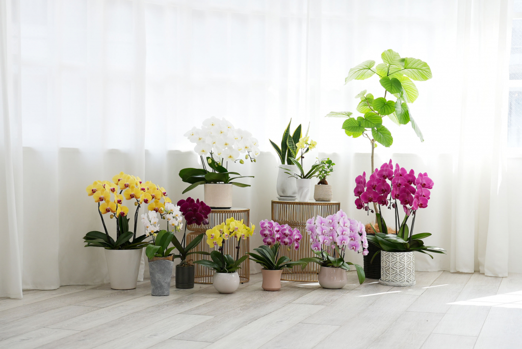 自宅スペースを考え、ミディ胡蝶蘭や小ぶりの鉢植えが好まれます。