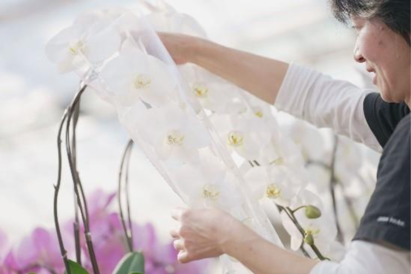 この花持ちの良さが、胡蝶蘭が贈り物として人気の理由のひとつです。特に温度や環境が安定している室内では、2ヶ月以上花が咲き続けることもあります。そのため開店祝いや開業祝いなどの贈り物として選ばれやすい花になっています。